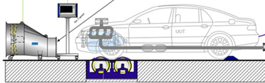 排放底盤測功機是一種用來測試汽車動力性、多工況排放指標、燃油指標等性能的室內臺架試驗設備。汽車底盤測功機通過滾筒模擬路面,計算出道路模擬方程,并用加載裝置進行模擬,實現對汽車各工況的模擬。